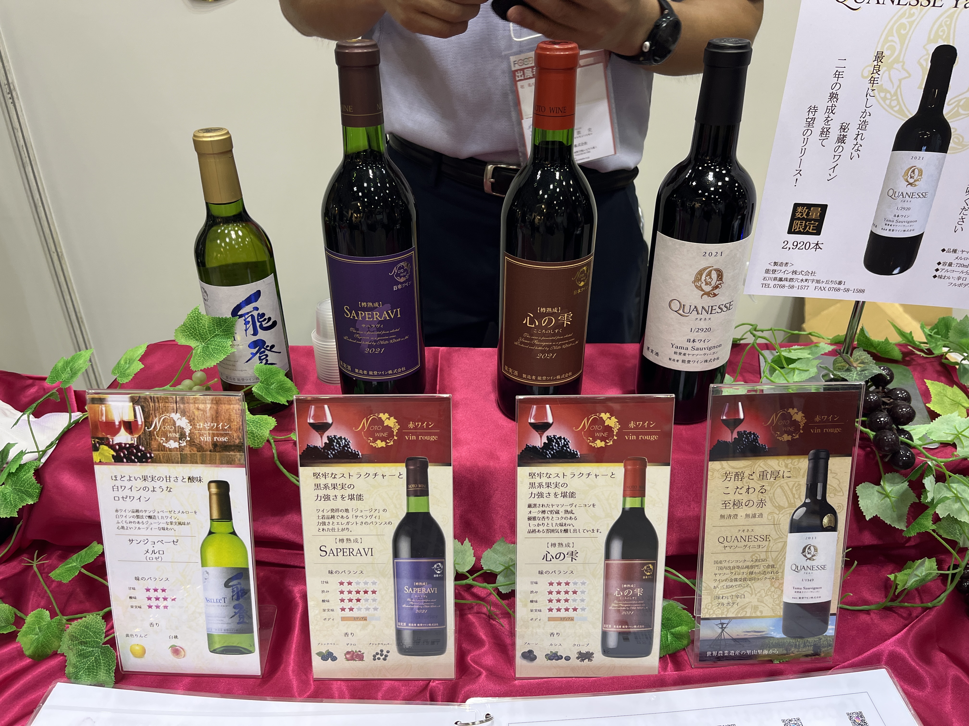 能登ワインは、キャッチコピー「最良年にしか造れない秘蔵のワイン」をかかげてFOOD STYLE Japan2023に出展されました。