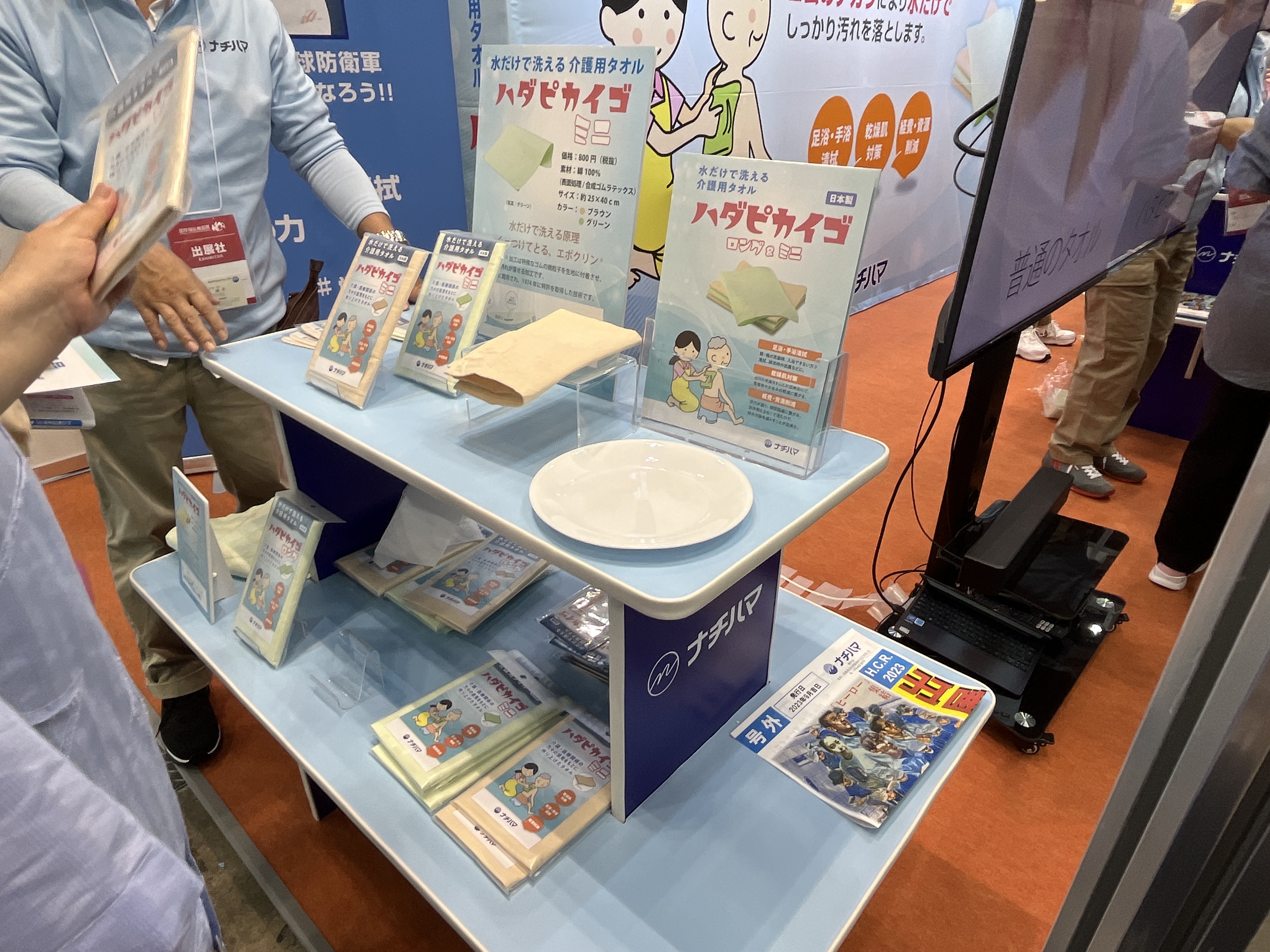 ナチハマは、今回のテーマを「水だけで洗える介護用タオル」としてH.C.R.2023 第50回国際福祉機器展&フォーラムに出展されました。