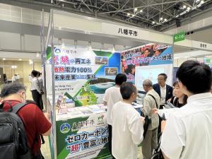 ■出展社ブースの様子 出展者ブース内のパネルや製品を撮影取材。